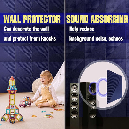 Large Cork Board for Walls 48"x 36", 12 Pack Felt Wall Tiles with Safe Removable Adhesive Tabs, Cork Board for Office,Pinboard Bulletin Board - Dark Blue