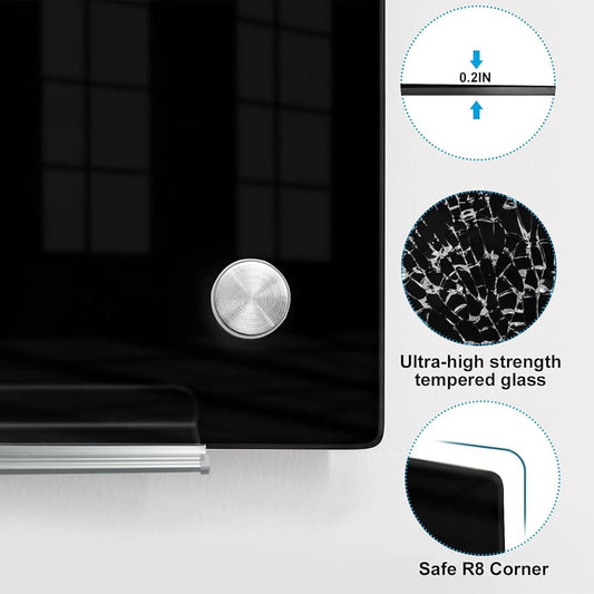 TSJ OFFICE Glass Dry-Erase Board - 36 x 24 Inches Wall Mounted Black Glass Magnetic Whiteboard, Frameless Large White Board for Office, Home & School