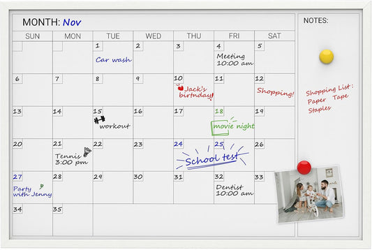 Comix Dry Erase Calendar Whiteboard for Wall,Magnetic Dry Erase White Board with White Wood Frame, 36 * 24 inches Decorative Planner Board for Office, Kitchen, School, Home
