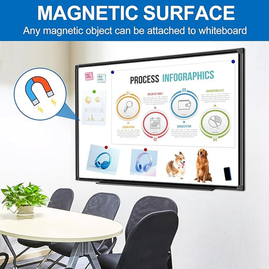 Magnetic Dry Erase Whiteboard - 46 x 33 Inch White Board - 4 x 3 Large Wall-Mounted Board with Black Aluminum Frame, 1 Magnetic Eraser, 2 Pen, Detachable Marker Tray, 6 Magnets