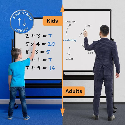 Mobile Magnet Large Whiteboard with Stand 72x40 Double-Sided Dry Erase Board with Stand - Magnetic Portable Standing Whiteboard - Rolling White Boards with Easy Flip Feature