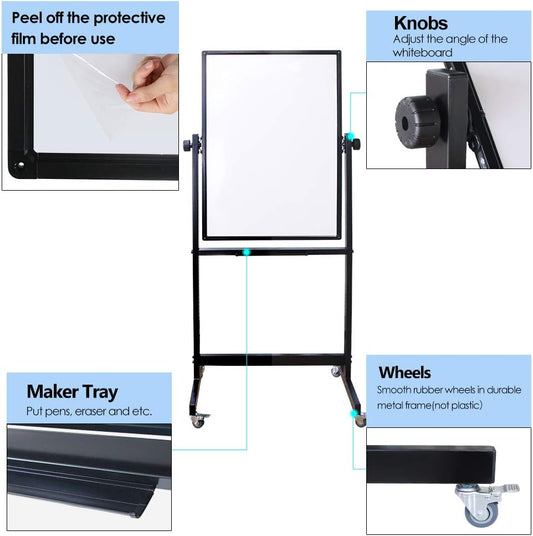 Xiwode Movable Double-Sided Magnetic Whiteboard with Wheels, Upgraded Durable Type of Mesh Bracket, Whiteboard Dimension 60×36,Can be Flipped, Written and Display, Suitable for Office and Classroom