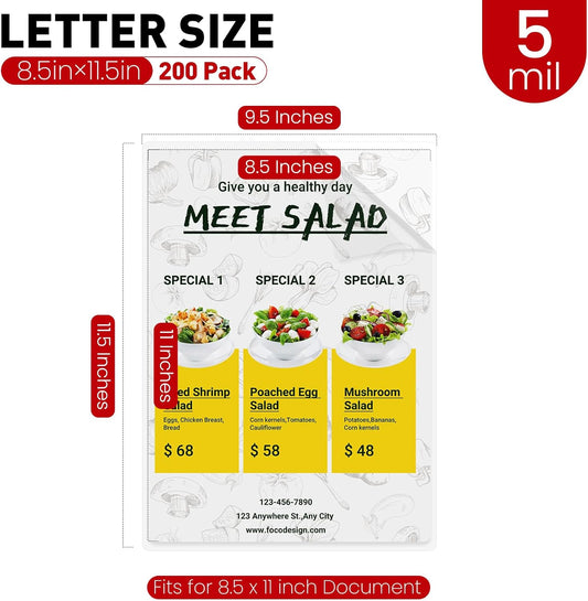 Thermal Laminating Pouches 9"x11.5" Inches, 3mil 200Pack, Laminated Paper, Clear, Letter Size, Office and School Supplies