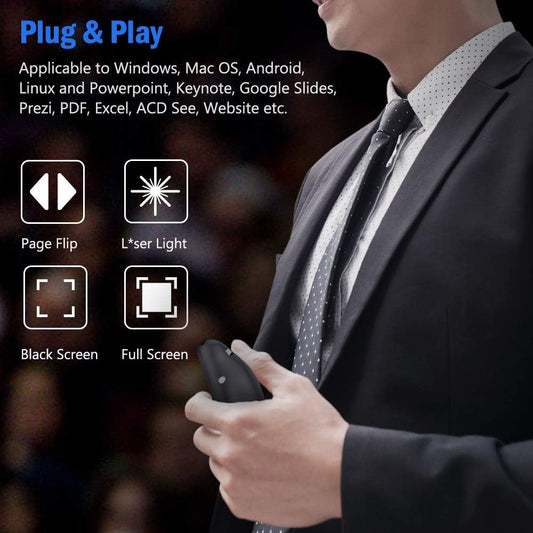 Wireless Presenter Remote Presentation Pointer Clicker with Hyperlink & Volume Control USB PowerPoint Slide Advancer
