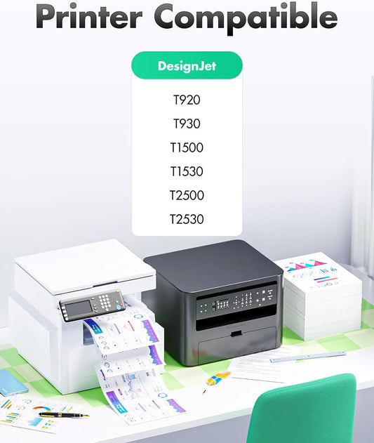 727 Ink Cartridges set 6-Pack 300-ml High Yield Replacement for HP 727 Ink F9J79A C1Q12A F9J76A F9J77A F9J78A F9J80A Compatible with HP DesignJet T930 T920 T1500 T2500 T1530 T2530 Printer Color Inkjet