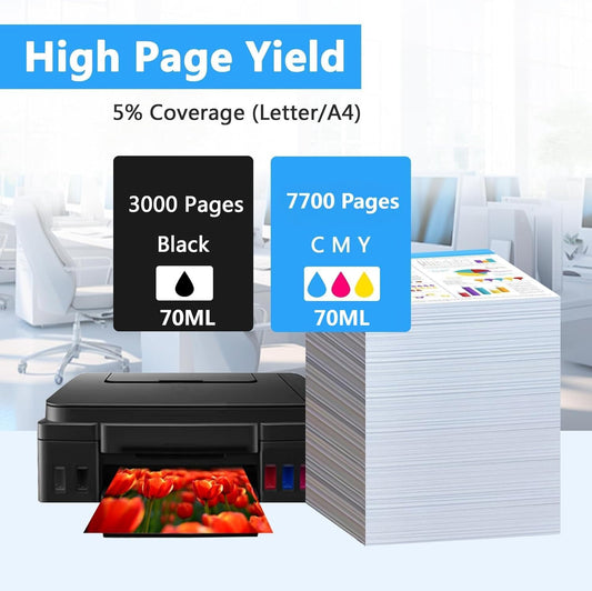 LCL Compatible Ink Bottle Replacement for GT51 GT52 GT5810 5820 5811 5821 5822 118 310 311 315 318 319 410 411 415 416 418 419 (4-Pack Black Cyan Magenta Yellow)