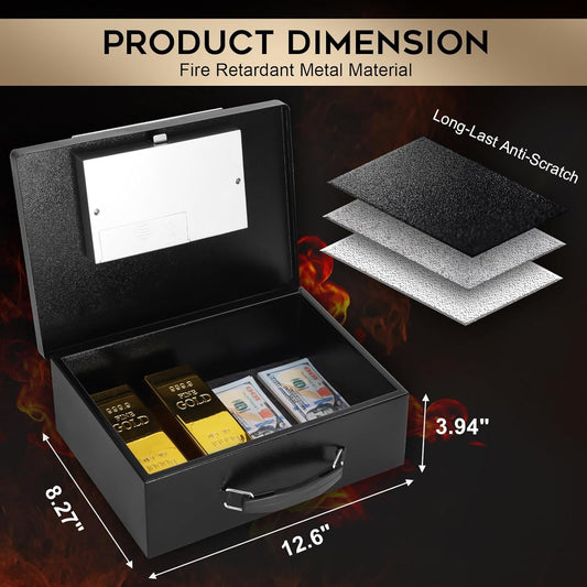 Dalmbox Portable Metal Safe Box with Digital Code Lock,Fire Resistant Storage for Documents, Fireproof Safe Box, Car, Home, Office and Outside, Black Box,Large
