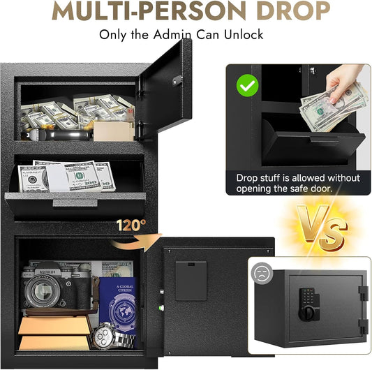 Business Safe Box with Drop Slot, Heavy Duty 4.0 Cu Ft Depository Drop Safe Money Safes Digital Combination Anti-Fishing Deposit Safes for Home Office Hotel Cash Slips Expense