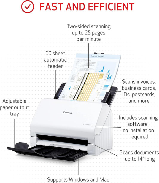 Canon imageFORMULA R30 - Office Document Scanner, Auto Document Feeder, Duplex Scanning, Plug-and-Scan Capability, No Software Installation Required