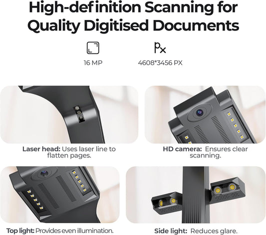 CZUR ET16 Plus Advanced Book & Document Scanner, 2nd Gen Auto-Flatten&Deskew Tech, 16MP Camera, Capture A3, 186 Languages OCR, Convert to PDF/Searchable PDF/Word/Tiff/Excel, Run On Windows&MacOS