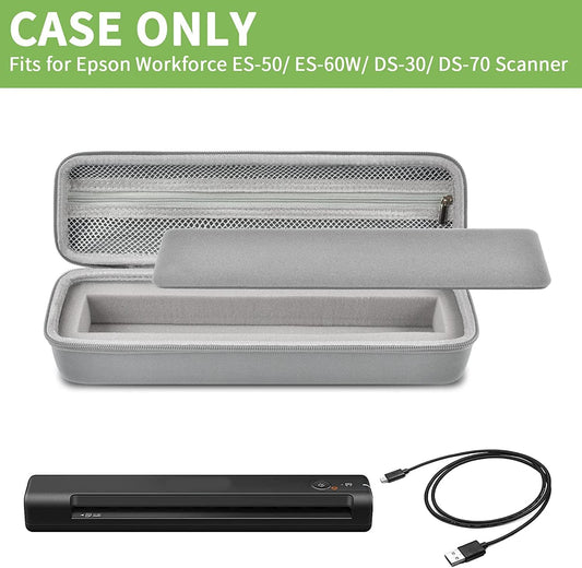 Case Compatible with Epson Workforce ES-50/ ES-60W/ ES-55R/ ES-65WR/ DS-30/ DS-70/ DS-80W Portable Sheet-Fed Document Scanner, Storage for Epson Scanner for PC and Mac- Grey (Box Only)