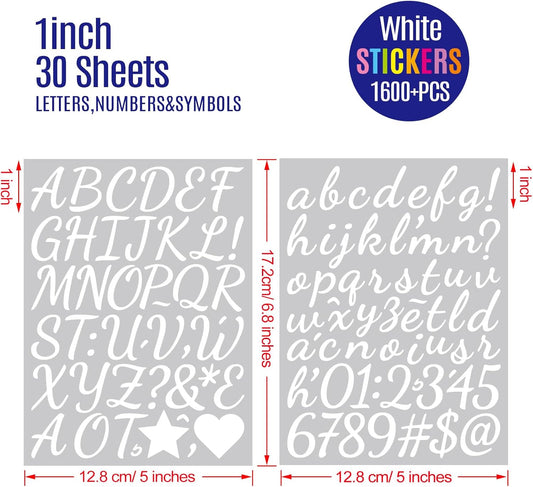 Letter Stickers 30 Sheets 1600 Pieces Alphabet Sticker 1 Inch Vinyl Self Adhesive Stick on Stickers for DIY Crafts Art Making Mailbox Scrapbook Classroom Decor(White)