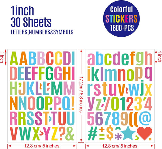 Letter Stickers 30 Sheets 1600 Pieces Alphabet Sticker 1 Inch Vinyl Self Adhesive Stick on Stickers for DIY Crafts Art Making Mailbox Scrapbook Classroom Decor(Colorful)