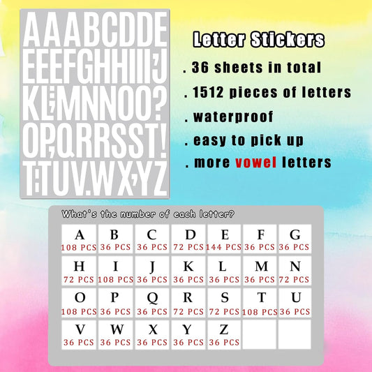 Bemeol 1368 Pieces Letter Stickers 36 Sheets 2 Inch Alphabet Letter Stickers Vinyl Self Adhesive Sticker Letters for Bulletin Board Home Classroom Mailbox Decor(White)