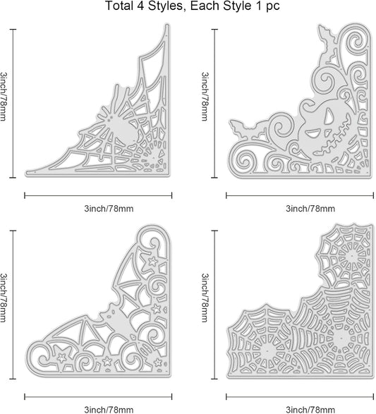 GLOBLELAND Halloween Lace Corner Cutting Dies for Card Making Spider Bat Pumpkin Cobweb Cut Die for DIY Scrapbooking Journal Embossing Paper Craft Decor