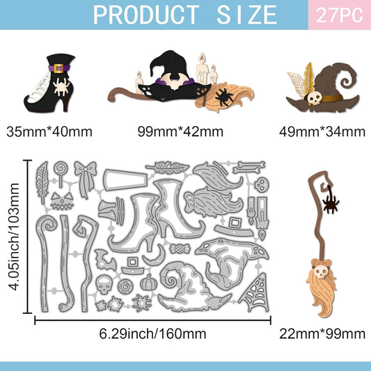 GLOBLELAND Halloween Witch Hat and Shoes Cutting Dies for Card Making Magic Broom Cut Die for DIY Scrapbooking Journal Embossing Paper Craft Decor
