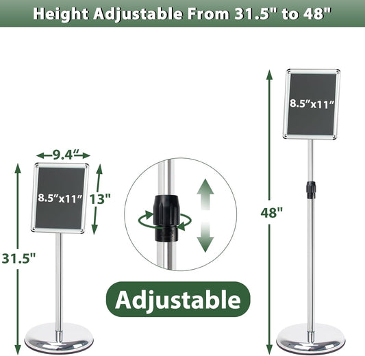 Heavy Duty Sign Holder Poster Stand 8.5"x 11" Floor Standing Sign Holder Adjustable Pedestal Sign Stand with Cast Iron Base for Display/ Advertisement (Black)