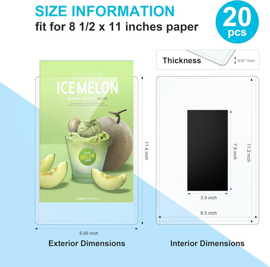 Magnetic Sign Holder, 8 1/2”×11” 20 Pack, Rigid Magnetic Document Holders Can be Used as Magnetic Picture Frame for Locker/Refrigerator, Ideal for Office,School,Home Children Artwor and Business etc