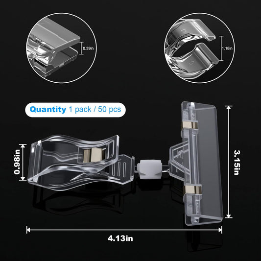 50 Pieces Double Sided Sign Clip, Clear Retail Merchandising Signs Display Tags, Plastic Sign Holder Rotatable Pop Clip-on Promotion Clips Stand for Label, Basket, Business Cards
