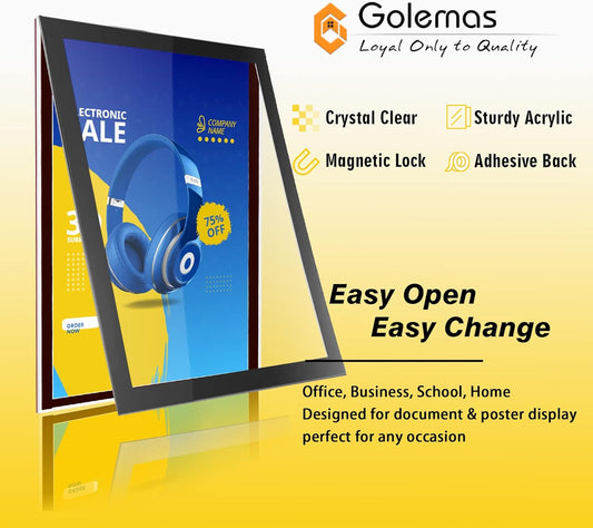 Acrylic Magnetic Sign Holder, Easy-Opening 8.5 x 11 Wall Mount Display Frames, Self Adhesive Back Plastic Clear Document Frame, Horizontal & Vertical Display (Black, 6Pack)