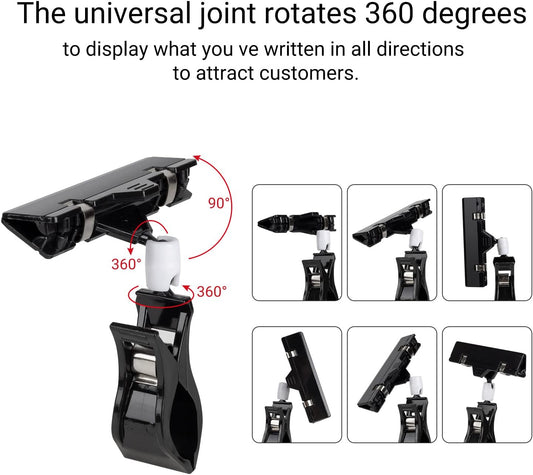 10 Pcs Big Black Adjustable Sign Clips for Display, Plastic Sign Holder Clips for Retail, Swivel Price Signs Clip, Rotatable Price Shelf Clips for Store Clothing Rack Merchandise Shelf Basket