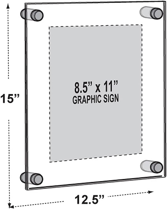Azar Displays, 105514, Floating Acrylic Wall Frame with Silver Hardware Stand Off Caps, Clear Hanging Photo Frame Display Mount with Frameless Border, Glass-Like Frame for Large Prints, 8.5" x 11"