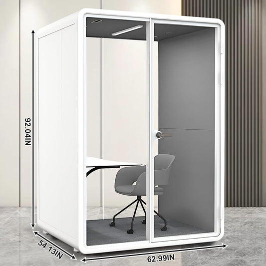 Office Sound Booth with Audio Privacy - Portable Soundproof Booth Includes White Frame with Curved Corners,Soundproof Room with Light,Fans, Magnetic Door Lock&Table for Study (62.99IN)