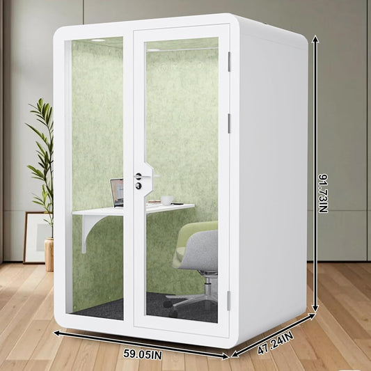 Office Sound Booth with Audio Privacy - Soundproof Recording Booth Includes Green Frame with Curved Corners,Soundproof Room with Light,Steel Plate Structure for Study (62.99IN)