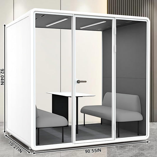 Office Sound Booth with Audio Privacy - Portable Soundproof Booth Includes White Frame with Curved Corners,Soundproof Room with Light,Fans, Magnetic Door Lock for Negotiation Room (90.55IN)