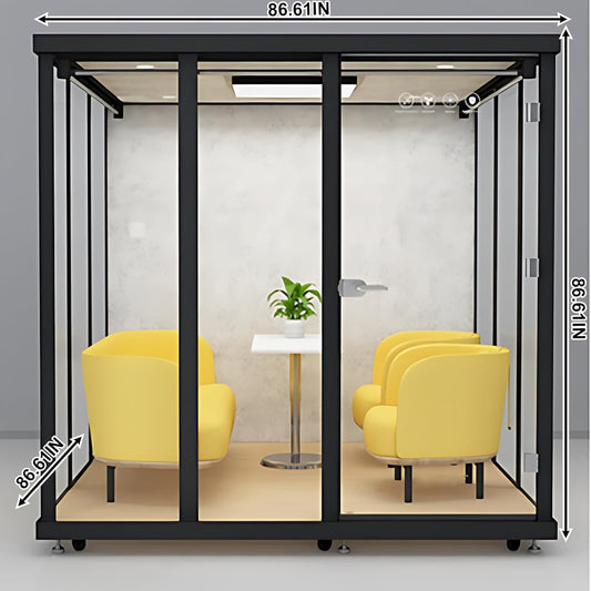 Office Sound Booth with Audio Privacy - Modern Soundproof Booth Includes Black Transparent Glass Design,Freestanding Office Room with Light, Fans,Casters for Negotiation,Meeting(86.61IN)