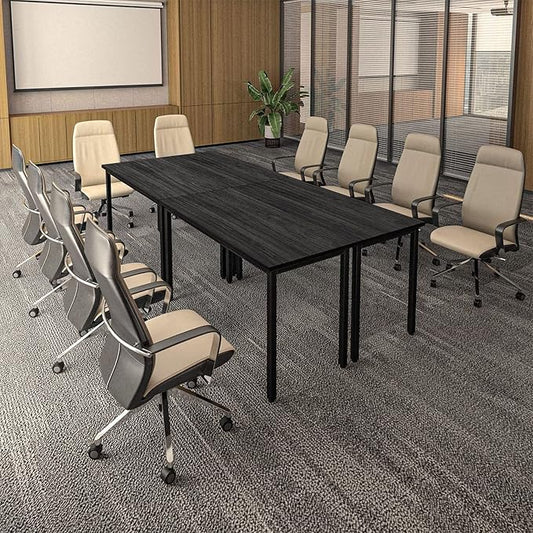 Bonzy Home Conference Tables 16ft Office Computer Desk for Meeting Room Study Writing Printer Table Meeting Seminar Table for 20 People Modern Black 8PCS (188.8"x47.2"x29.5", Black)