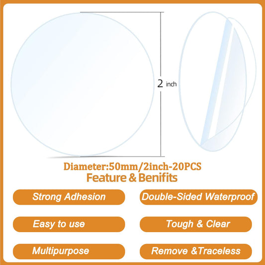 20PCS Heavy Duty Double Sided Adhesive Mounting Circle Tape- Waterproof,Strong Adhesion,Clear, High Strength,No Residue Removability for Hanging,Wall Mounting, Home Decor,Adhesive for Shower