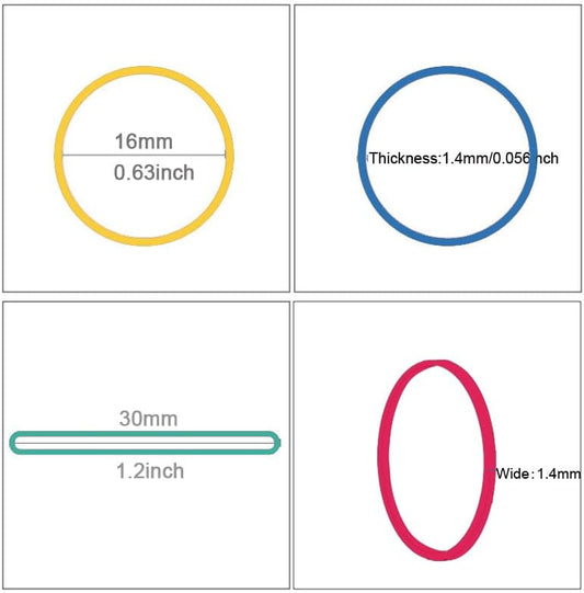 Rubber Bands Small Mini Elastic Band Yellow Blue Green Red 1300pcs Rubber Band 1.2inch Office Supplies Home Inside Diameter 0.63in (Multicolour)