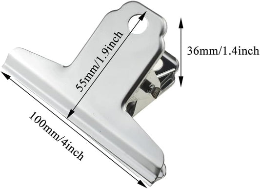 HAHIYO 4inch Silver Bulldog Clips Metal File Hinge Binder Clamps Save Space Strong Spring Jaws Rock Solid Grip Book Lay Flat Deburred Edge for Hang Photos Wall Grid Dog Food 11PCS