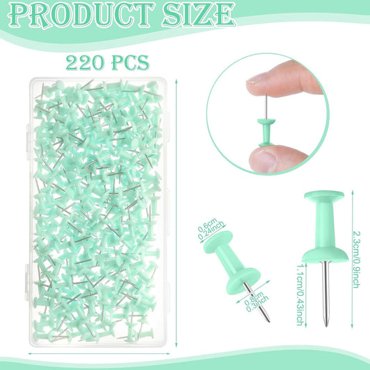 220 Count Green Push Pins, Standard Plastic Head Steel Point Thumb Tacks Decorative Push Pins for Cork Board Wall Hanging
