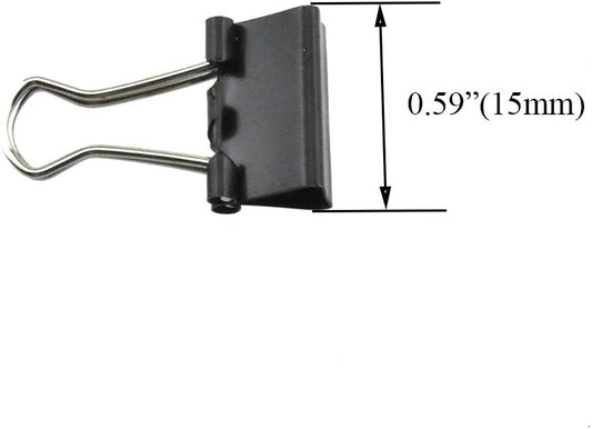 HAHIYO Binder Clips Paper Clamps Spring Steel Sturdy Mini 0.59 inches Width 0.2 Inch Capacity No Sharp Edges Heavy Duty Tight Grip Reusable Black Metal Bright Finish for Home Office School 100 Pack