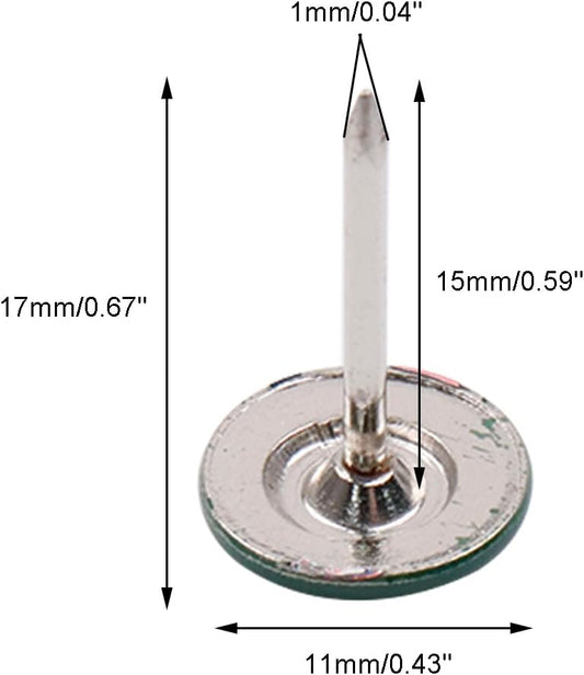 100Pcs Flat Head Upholstery Tacks Home Furniture Decor Tack Upholstery Nails Flat Push Pins Flat Thumb Tacks Green (11mmx17mm)