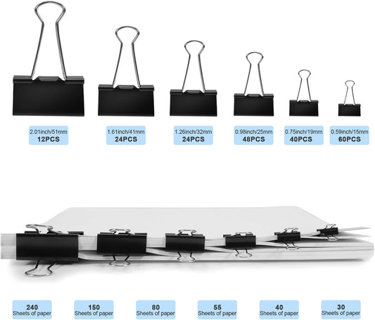TecUnite 150 Pcs Binder Clips Assorted Sizes Black Paper Clamps Clips Large Medium Small Clips Office Supplies