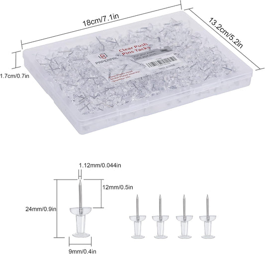 PAPERPAL 280 Clear Push Pins for Cork Board, Clear Thumb Tacks for Wall Hangings, Pushpins for Office School & Personal Use, Standard Size Push Pin Tacks