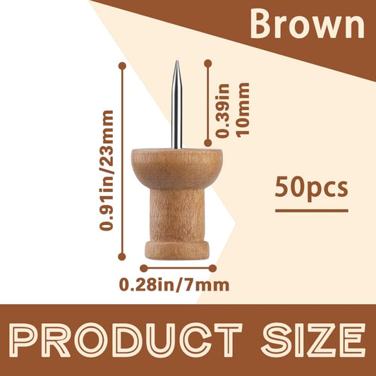50 Pcs Wooden Push Pins, Decorative Thumb Tacks, Push Pins for Cork Board Head Pin Wood Map Tacks Marking Pin, Wood Thumb Tacks Decorative for Bulletin Boards Craft Projects with Storage Box, Coffee