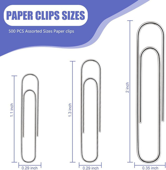 Paper Clips, 500 Pcs Assorted-Size Paperclips, Premium Silver Paperclip Large Medium and Small, Rustproof Metal Paper Clips for Office, School, Home