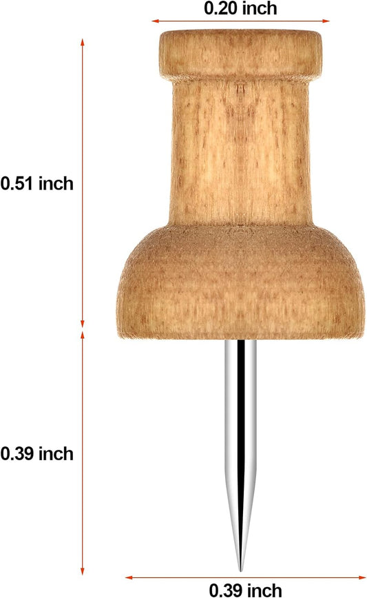 100Pcs Wood Push Pins, Thumb Tacks for Decorative, Wooden Pins and Tacks, Cork Board Thumbtacks, Cute Thumbtack for Wall and Bulletin Board, Map Pins