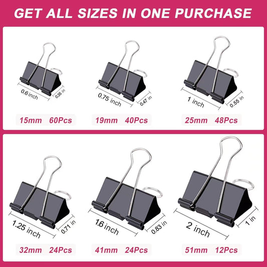 208 PCS Binder Clips Paper Clamps Assorted Sizes, Metal Paper Binder Clip, Black Binding Paperwork Clamp Bulk, School Teachers Office Supplies