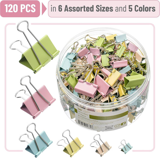 Mr. Pen- Binder Clips Assortment: 120 Pieces, Various Sizes, Colorful Office Supplies