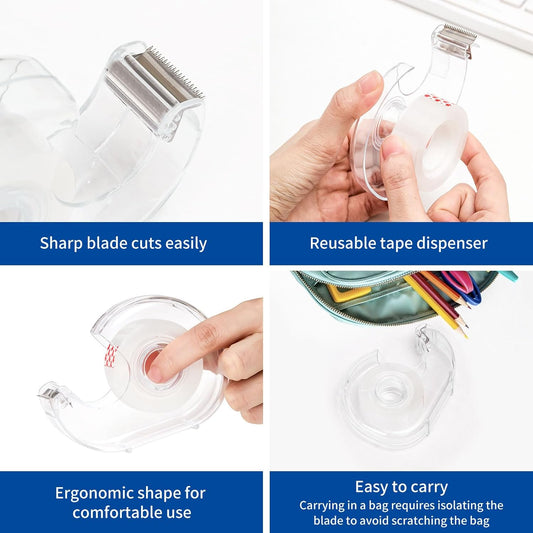 Transparent Tape with Dispenser 6 Pack Tape Dispensers Desk unweighted Non Skid Base Desktop Dispenser Bulk for Office Home School