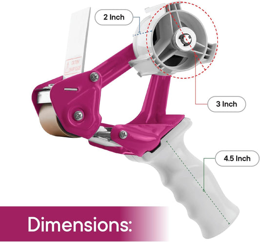 Heavy Duty Metal Frame Tape Gun - 3" Core with Special Ergonomic Handle - Packing Tape Dispenser with Premium Tempered Steel Blade for 2" Tape Rolls