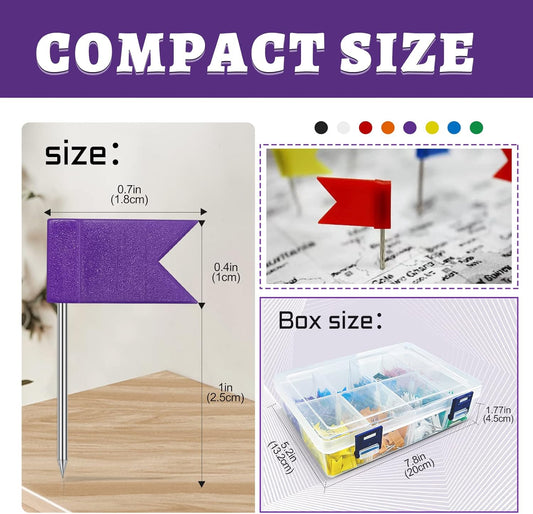 Colored Flag Travel Map Push Pins, 400 Pack Multicolored Decorative Map Tacks Assorted 8 Colors, Plastic Head for Cork Bulletin Board, Picture Hanging at Home Office School