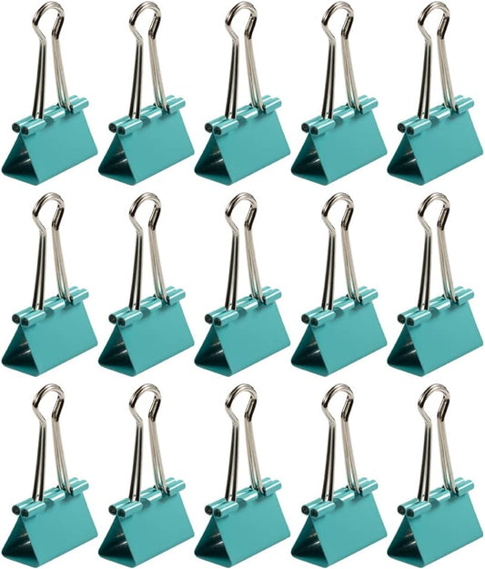 JAM PAPER Colorful Binder Clips - Medium - 1 1/4 Inch (32 mm) - Teal Binderclips - 15/Pack
