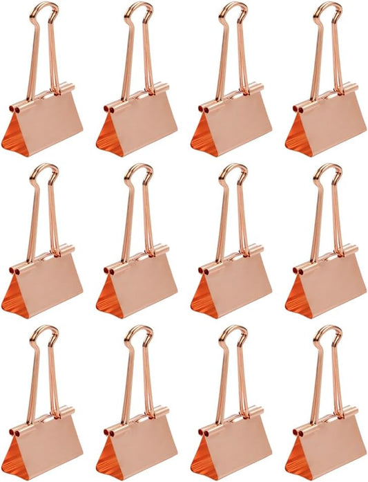 JAM PAPER Colorful Binder Clips - Large - 1 1/2 Inch (41 mm) - Rose Gold Binderclips - 12/Pack