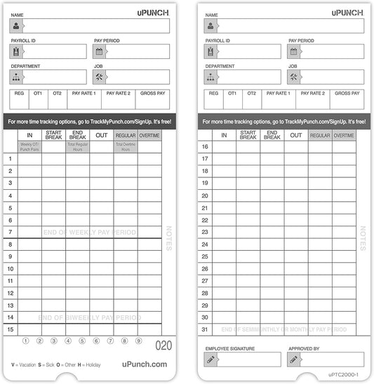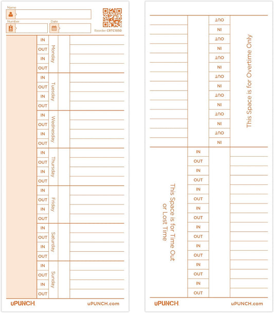 uPunch 100 Time Cards for CR1000 Digital Time Clock and Date Stamp